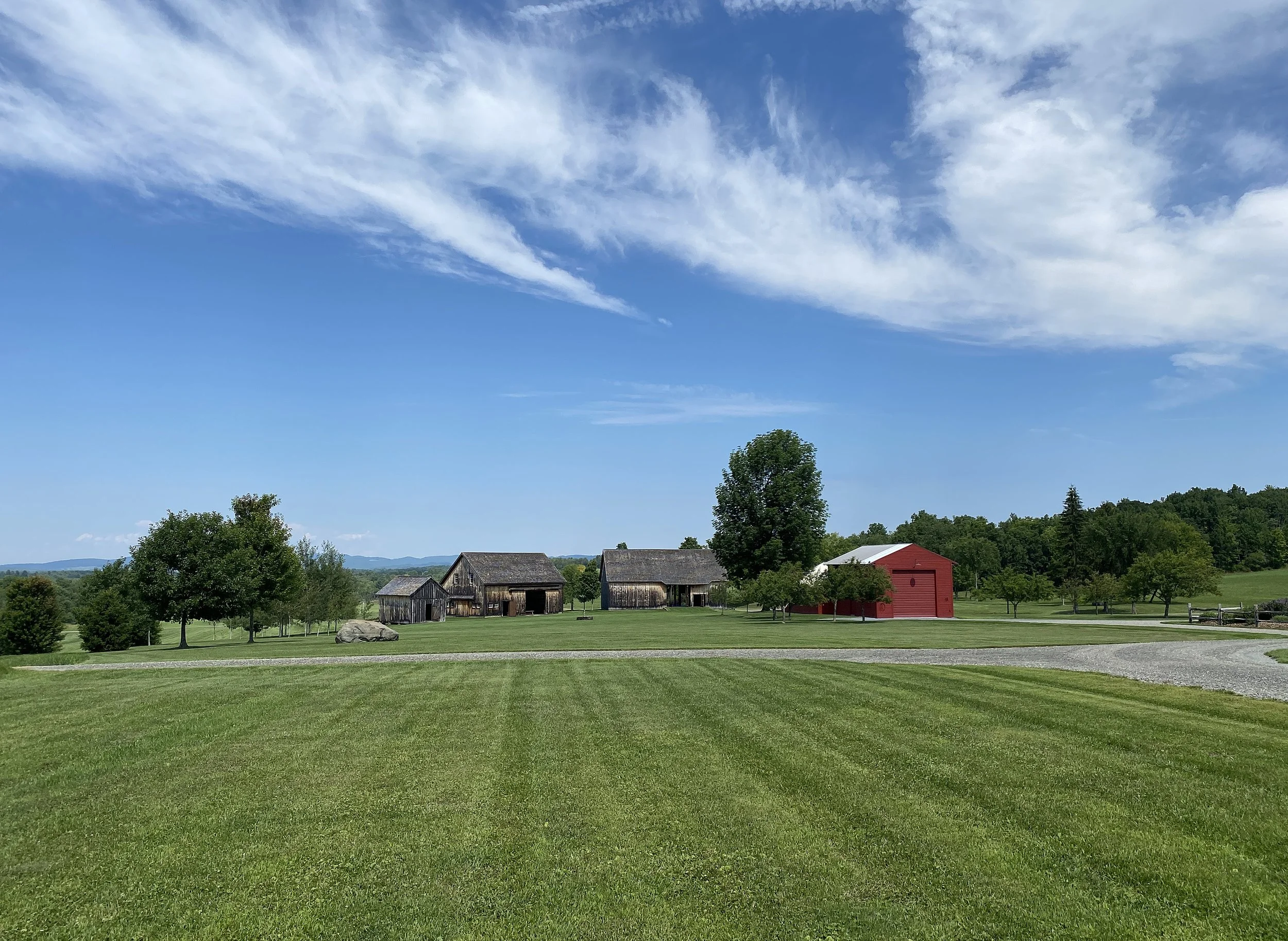 Perched on a hillside in the northeastern section of the Hudson River Valley, the historic barns and other buildings are surrounded by 123 acres of farm fields, woodlands, a stream and wetlands. The expansive views of an agricultural landscape can be enjoyed from both inside and outside the barns.