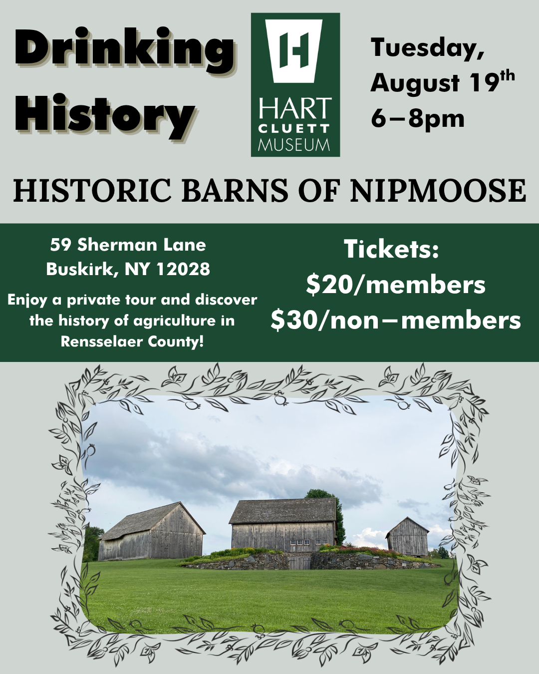 The Hart Cluett Museum Drinking History series brings people together to explore the history of Rensselaer County, outside of the museum. Deep dives, hot takes, and drinks for all!