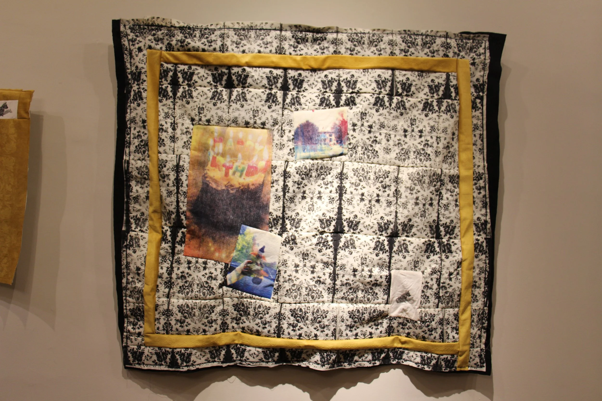 Artist Statement: Through printmaking, photography, and textiles, my work explores themes of domesticity, recollection, and memorialization. Mining my personal archive of images, I create quilt-like objects that encapsulate moments in time. My photographs are translated onto fabric using silkscreen, etching, and woodcut. With each printing process, the original photograph becomes fragmented and information is lost—underscoring the malleability and fallibility of memory. Influenced by traditions of vernacular photography, I adorn my works with floral surface patterns, using the flower as an allegory of life and mortality. Printing the photographs onto fabric enhances the image’s ability to provoke remembrance through the presence of touch and the body. Each step of translating an image—layering, repeating, shifting to a larger scale—simultaneously erodes and commemorates the photograph’s previous stage, mirroring the process of remembering.