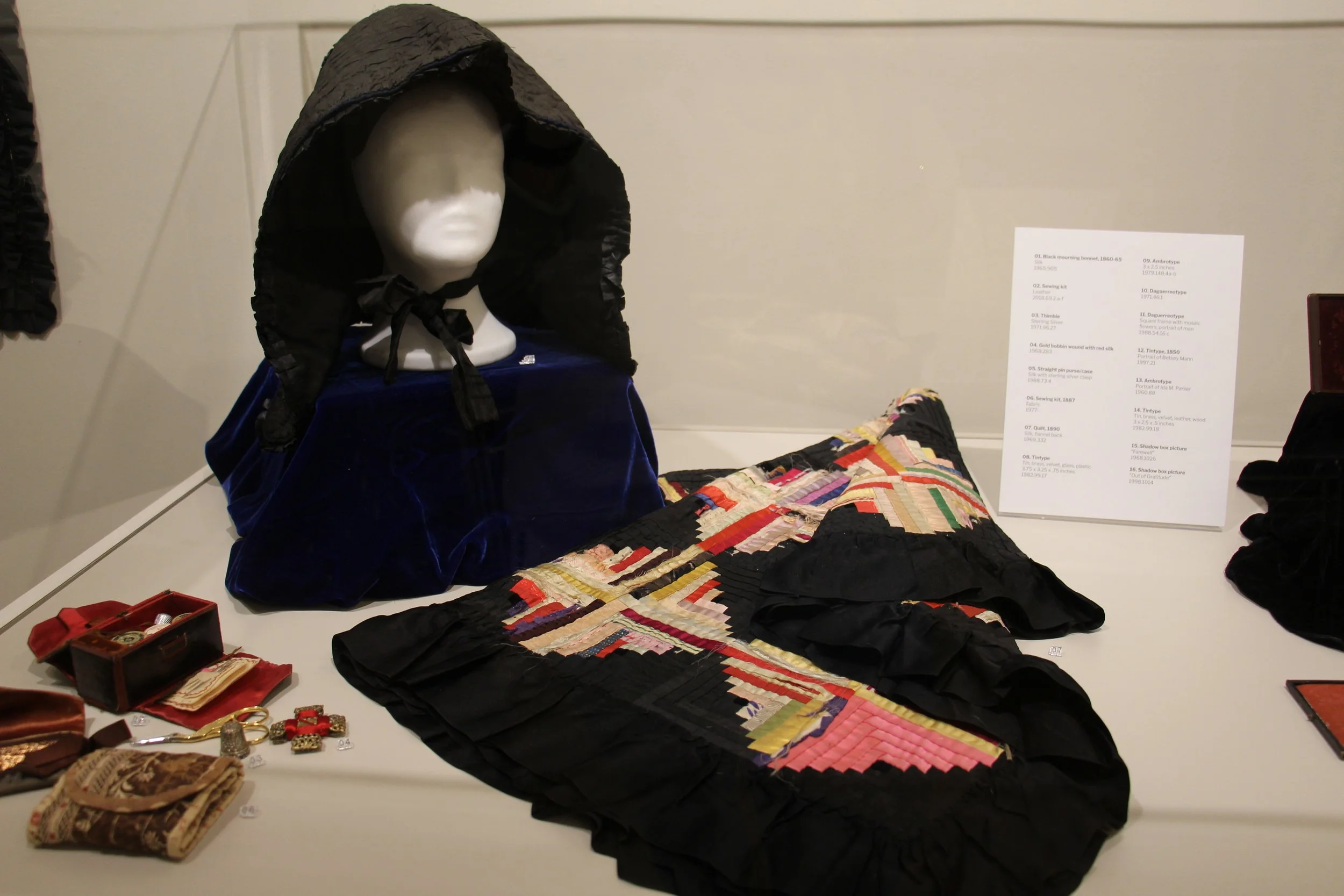 1. Black mourning bonnet,1860-1865, silk, accession no. 1965.905